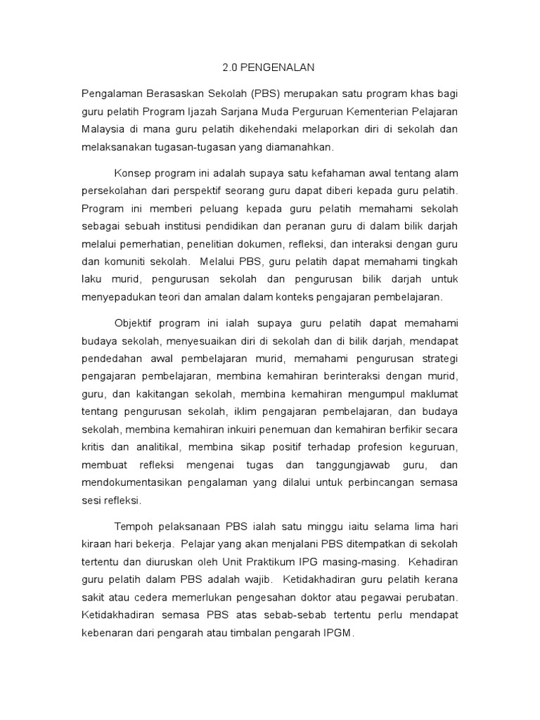 Pengalaman Berasaskan Sekolah 9 2109 Memastikan segala aktiviti PBS dilaksanakan dengan sempurna. Sebagai pengalaman buat kali kedua kepada. Bersyukur kehadrat Illahi kerana dengan berkat dan keizinan dariNYa dapat saya menyiapkan tugasan PBS ini dengan jayanya pada Semester kedua Program Ijazah Sarjana Muda Perguruan BPG.